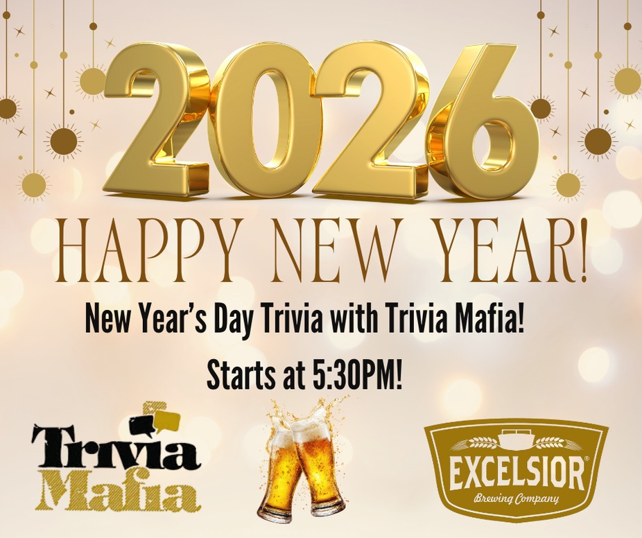 Kick off the New Year the smart way at Excelsior Brewing! Join us for Trivia Mafia on New Year’s Day, starting at 5:30 PM. It’s your chance to shake off the holiday haze, flex that big brain, and hang out with all your smartest friends.